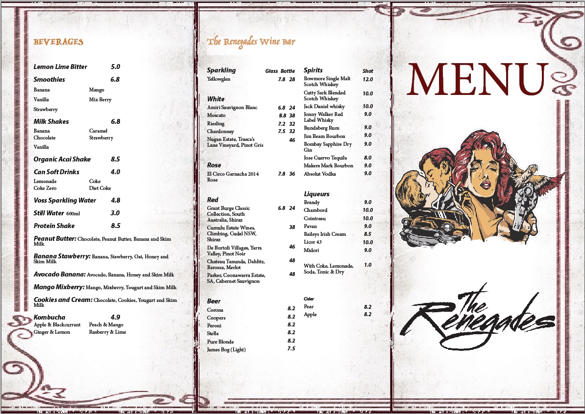 The Renegades Mascot Menu